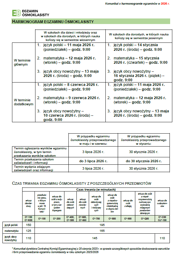 Informacje o egzaminie znajdują się na stronie Centralnej Komisji Edukacyjnej.