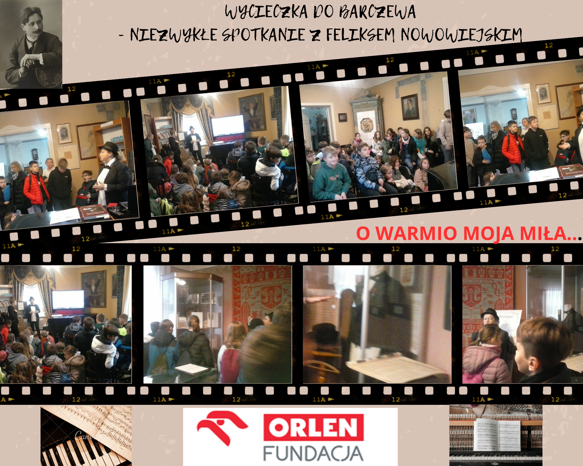 Dnia 26 października w ramach projektu " Leci z wiatrem pieśń przez warmińską wieś" sponsorowanego przez Fundację Orlen odbyła się wycieczka do Barczewa. Wzięli w niej udział uczniowie z klasy VA i VC. Mogli oni obejrzeć Salon Muzyczny im. Feliksa Nowowiejskiego w Barczewie, kameralne muzeum biograficzne, poświęcone wybitnemu polskiemu kompozytorowi, dyrygentowi, organiście, chórmistrzowi, pedagogowi i patriocie, który urodził się 7 lutego 1877 r. w Barczewie, ówczesnym Wartenbugu. Uczestnicy wycieczki dowiedzieli się, kim był ten zasłużony dla Warmii człowiek, jaki dorobek muzyczny pozostawił po sobie oraz podziwiali cenne pamiątki rodzinne, takie jak fortepian, fotografie, dokumenty, rękopisy, zbiory nut, książki, obrazy, przedmioty osobistego użytku, frak używany przez muzyka podczas koncertów i meble.