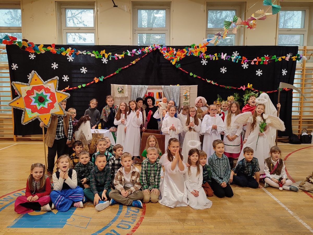 Po dwóch latach przerwy wróciliśmy do pięknej szkolnej tradycji jasełek. Tegoroczne pt. "W warmińskiej chacie rodzi się Bóg" przybliżyły widzom ludowe tradycje związane ze świętami Bożego Narodzenia. Obok Świętej Rodziny, Trzech Króli, aniołów, pasterzy oraz Heroda, diabła i śmierci pojawił się szemel, gospodyni i słudzy. Rozbrzmiały dźwięki znanych kolęd, ale także ludowych pastorałek. Po obejrzeniu jasełek uczniowie wraz z wychowawcami udali się do swoich sal na klasowe wigilie.